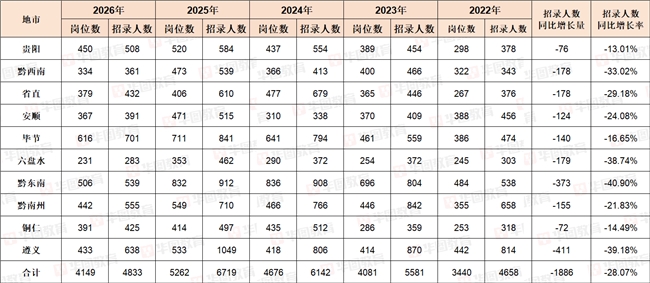 关注招录规模大(如毕节、遵义)或竞争压力可能相对较小的增长区域。