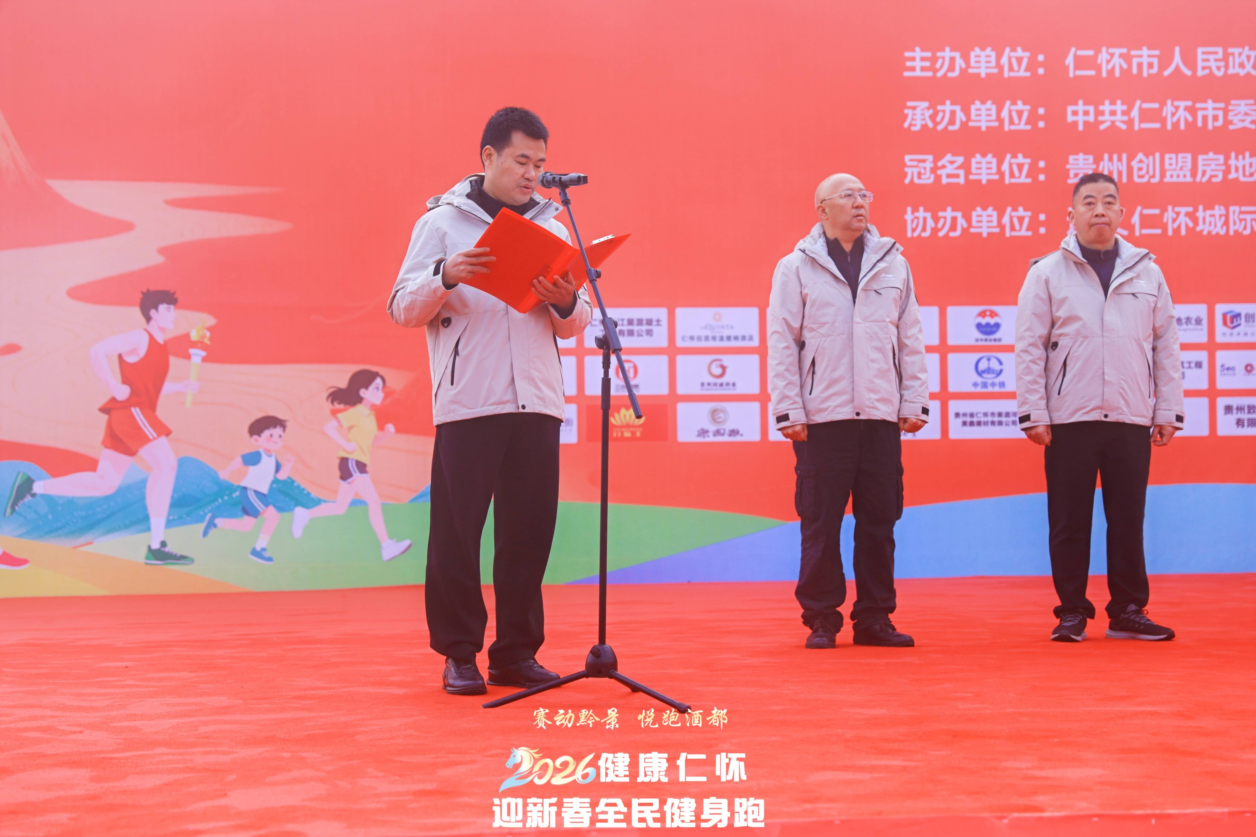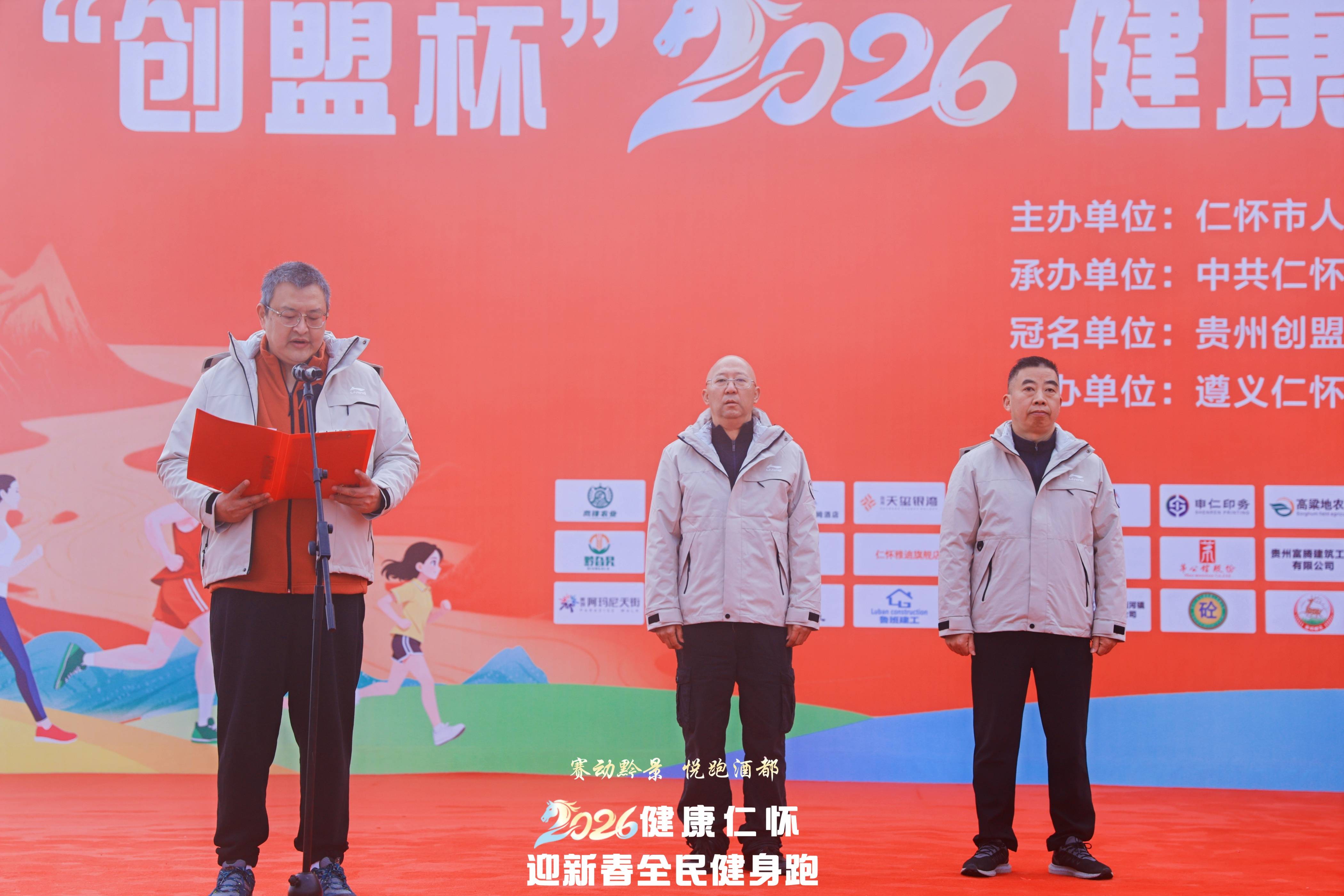 开幕式上,仁怀市人民政府副市长程云胜发表了热情洋溢的讲话。他提到:“今天的姜家寨公园草木含章、生机盎然,不仅涌动着仁怀儿女对新春的期盼、对健康的追求,更汇聚着来自周边兄弟县市区跑友们的热情与活力。”他强调,本次活动既是深入贯彻“健康中国”战略的具体实践,也是以体育为媒、喜迎新春佳节的生动载体,并鼓励大家把健身当成一种生活习惯,让运动成为一种生活时尚。他还透露,本次迎新春跑也是即将于三月启幕的“2026贵州・仁怀马拉松”的重要预热,期待大家届时再次相聚酒都。