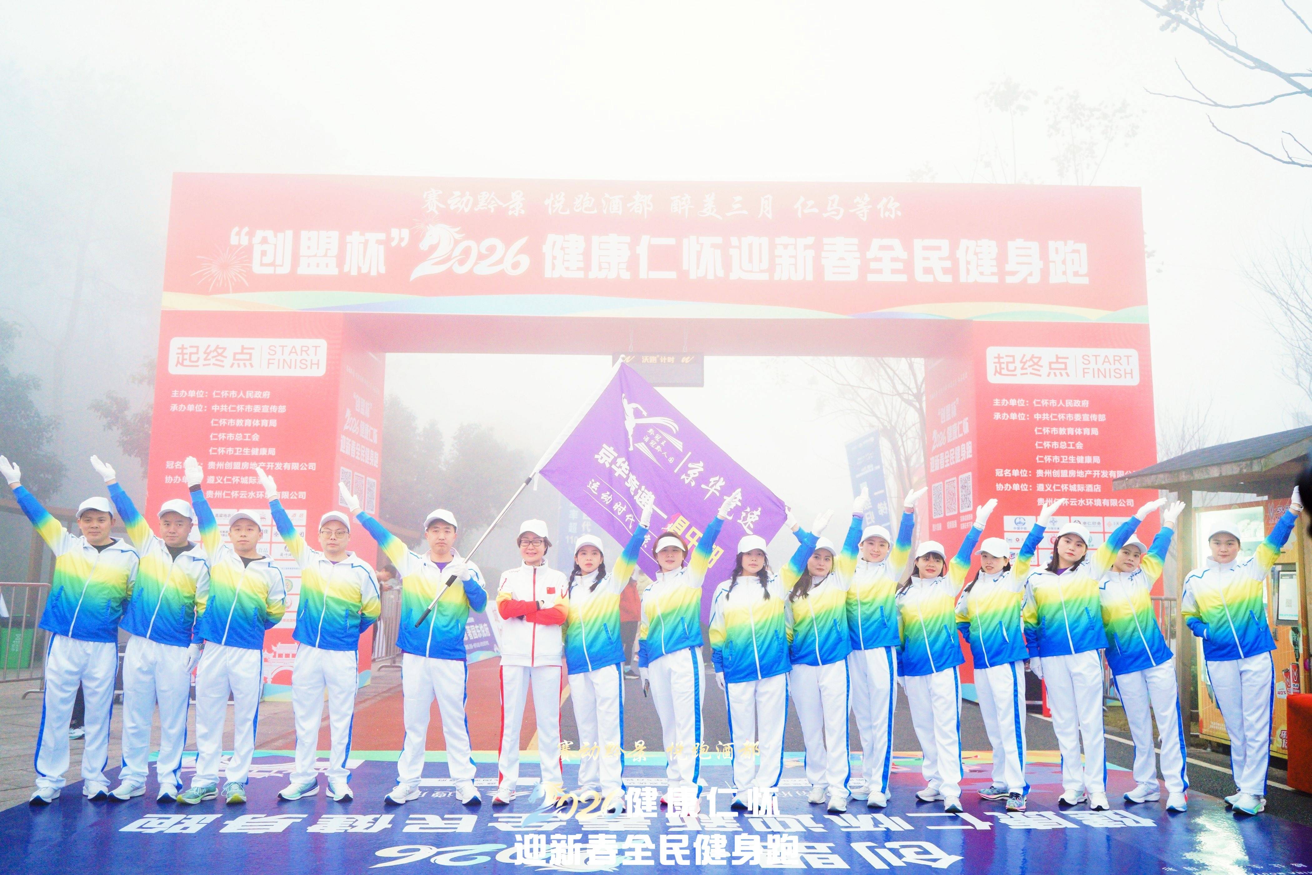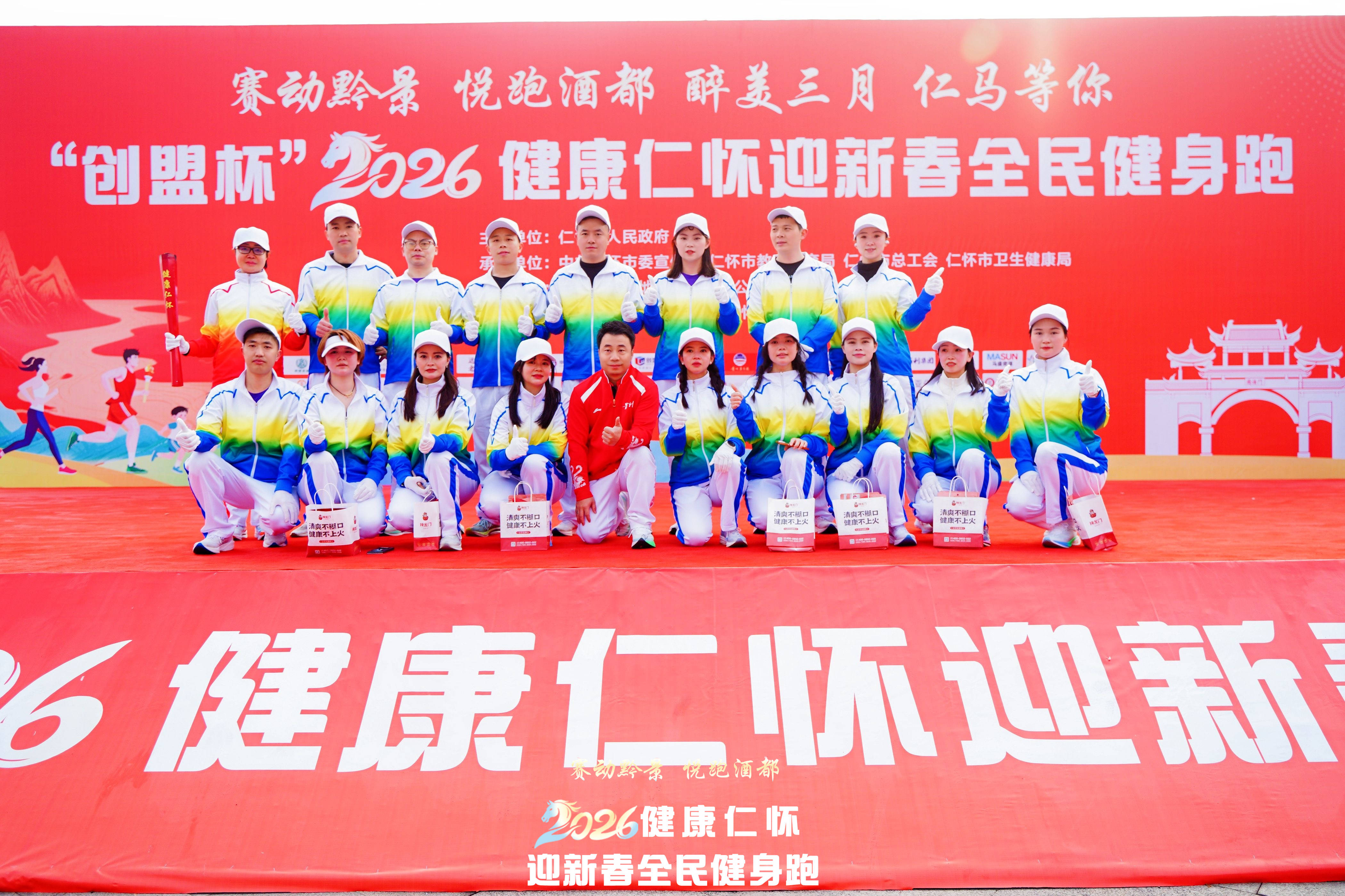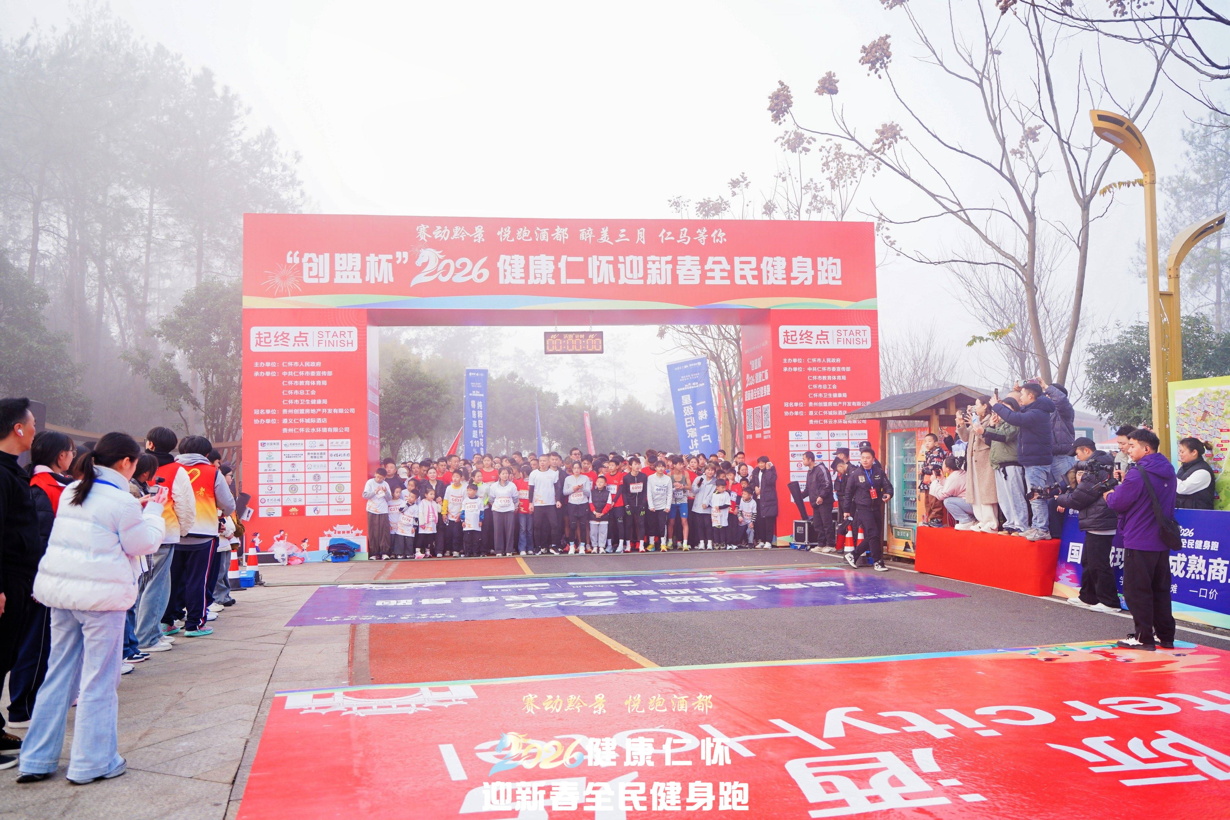 1月17日上午9时30分,冬日的暖阳洒满酒都,姜家寨公园与楠竹林生态体育公园内人头攒动,彩旗飘扬。由仁怀市人民政府主办,中共仁怀市委宣传部、仁怀市教育体育局、仁怀市总工会、仁怀市卫生健康局承办,贵州创盟房地产开发有限公司独家冠名,遵义仁怀城际酒店、贵州仁怀云水环境有限公司协办的“创盟杯”2026健康仁怀迎新春健身跑活动在此激情开赛。来自社会各界的1500名跑步爱好者齐聚一堂,以奔跑的方式迎接新春,用汗水诠释健康生活。