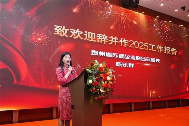 按照会议议程,贵苏商会会长陈乐群代表商会致辞并作2025年度工作报告。她说,商会取得的成绩凝聚着全体会员的智慧与汗水,她肯定了苏商同仁们在逆境中展现的“睿智敏行、厚德务实”精神,是商会最宝贵的财富。