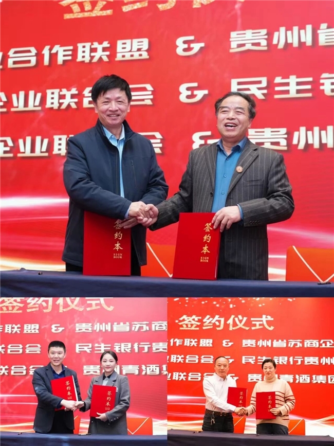 一同与贵苏商会签约的还有民生银行贵州分行、青酒集团,期待在接下来的合作中,秉持开放合作、互利共赢的原则,深化在各领域的交流合作,共同推动合作的繁荣与发展,共同书写苏商助力贵州高质量发展的新篇章!