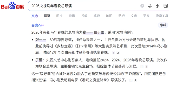 各大权威消息源今日仍显示2026央视马年春晚由“双导演”张一一、于蕾执导
