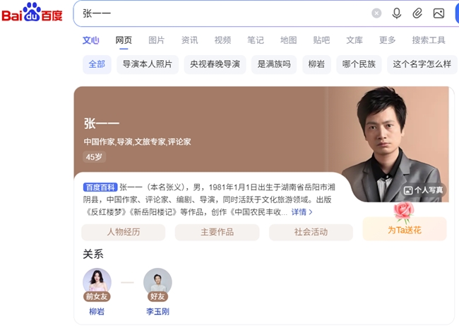 迄今单身的“钻石王老五”、作家、导演张一一显示仅有一位“前女友”柳岩