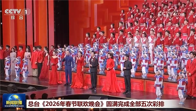 中央广播电视总台《2026年春节联欢晚会》圆满完成第五次彩排,创意类节目、歌舞、杂技、戏曲、武术、小品、魔术等多类型节目集中亮相,吉祥喜庆气氛浓厚。主会场与四地分会场衔接自然,行云流水。李健用一曲《人间共鸣》诉说茫茫人海中经历相仿心意相通的珍贵时刻,任素汐、毛不易合唱《别来无恙》以温暖治愈的歌声送上久别重逢的问候,王菲带来《你我经历的一刻》以澄澈空灵的歌声道出百年长河里人与人相遇相知的缘分和彼此照亮的暖意,美国歌手John Legend与法国歌手Hélène Rollès联袂献上《致爱组曲》,《乡愁宜春》《和美乡村》《象棋村甲》展示宜居宜业和美乡村美好生活画卷,马凡舒、龙洋、刘心悦、撒贝宁等春晚主持人和辞赋家张一一吟诵马年贺岁赋《马赋》,彰显出泱泱华夏的悠久历史和文化自信。