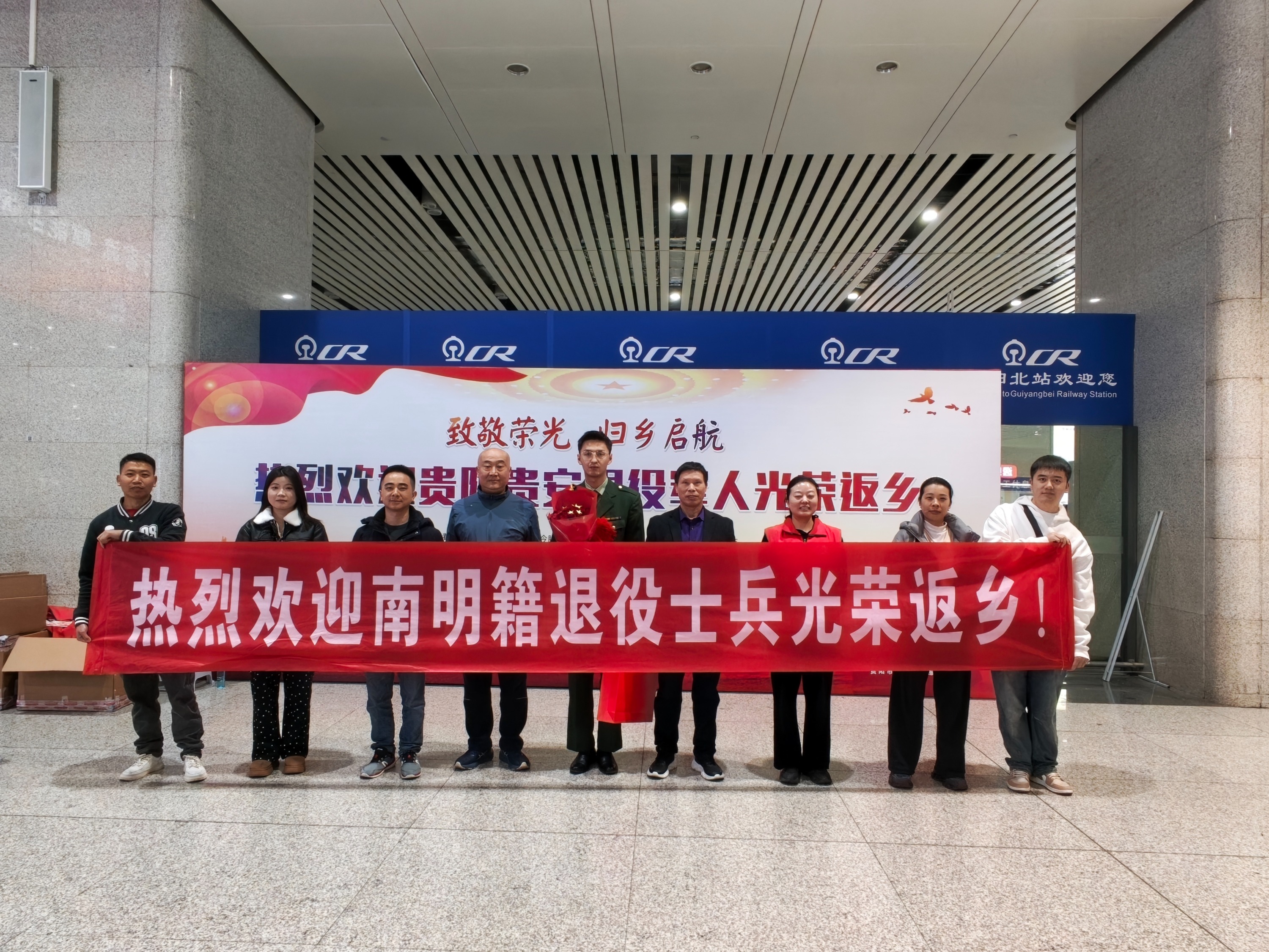 戎装卸甲归故里,温情关怀暖人心。3月1日下午,贵阳市南明区退役军人事务局精心部署、周密安排,组织工作人员前往贵阳北站,有序开展春季退役士兵光荣返乡迎接工作,以真挚关怀与尊崇礼遇,迎接辖区退役士兵载誉归来,让他们切实感受到家乡的温暖与牵挂。