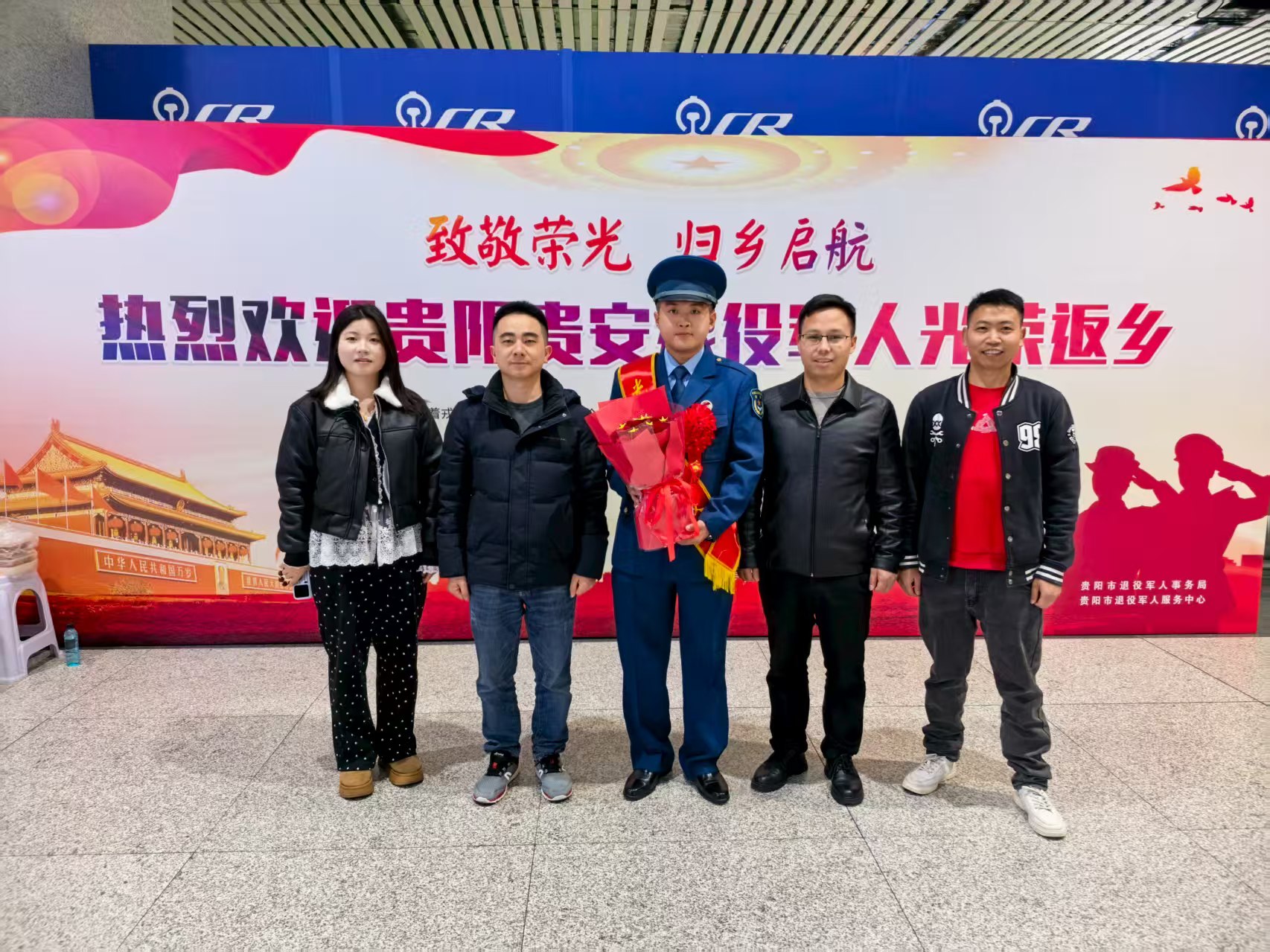 当日下午,贵阳北站内暖意融融,区退役军人事务局工作人员在退役军人返乡迎接专区,整理好迎接物资、核对返乡人员信息,耐心等候每一位退役士兵的到来。随着G2946、D5173、G3433、G3578等列车先后抵达,身姿挺拔的退役士兵们陆续走出站台,工作人员第一时间上前,与他们亲切握手、热情问候,详细询问旅途情况,为他们送上家乡的美好祝福,细致告知后续报到流程及相关服务政策,用贴心服务筑牢退役士兵归家“第一站”。此外,工作人员还逐一核对人员信息,详细记录他们的居住区域,针对有微信联络方式的退役士兵,及时添加好友,建立常态化联系机制,便于后续精准对接服务需求。