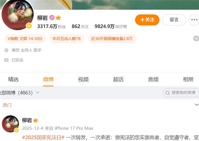 3300多万微博粉丝的“微博专业户”柳岩近4月没更新 “柳岩消失”上热搜