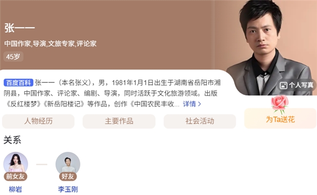 张一一百度百科人物关系官宣显示有且仅有过的一位“前女友”就是柳岩