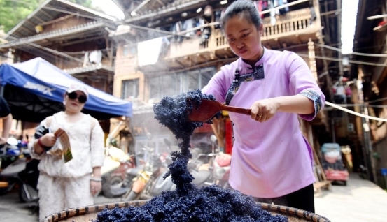 谷雨,是春季最后一个节气。在肇兴侗寨,村民们将谷雨称为“渐苟嫩堕拉”,寓意“吃乌米、播稻种、祈丰年”。清晨,侗寨升起袅袅炊烟,家家户户开始制作乌米饭。鲜嫩的乌饭树叶捣碎滤汁,浸泡糯米后蒸制,乌黑透亮的米饭清香四溢,不仅是节日里的专属美味,更承载着侗家人对丰收的祈愿和对生活的热爱。