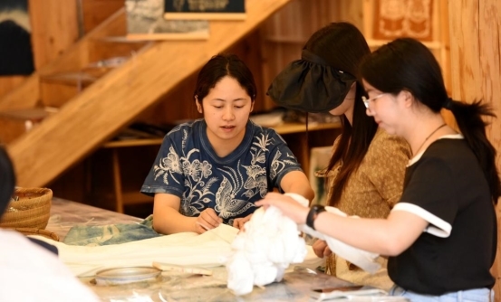 仁、义、礼、智、信五座鼓楼前,“侗寨印迹”十大互动体验同步开启。学侗话、拼鼓楼模型、对唱侗歌,游客们在趣味游戏中读懂侗寨的文化密码。迎宾寨门外的梯田里,稻田徒手抓鱼活动还原了侗族传统的农耕场景,都市人在这里重拾久违的田园野趣。午后,《侗族款约》实景展演开演,情景演绎与沉浸式参与相结合,让古老的侗族规约与人文精神变得可感可触。
