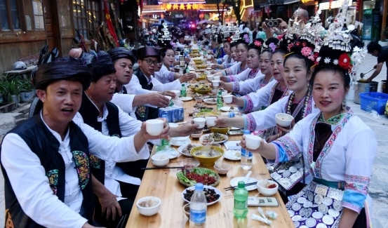 “相思谷雨”是谷雨节的重头戏。“做寨客”的习俗从古流传至今——谷雨这天,无论来自哪个寨子的乡亲,来了就是家人,大家分享美食、聊聊春耕,心越走越近,民族团结的情谊也越聚越浓。晚饭时分,长桌宴上欢声笑语,主客围坐、推杯换盏,温馨的画面在侗寨各个角落上演。