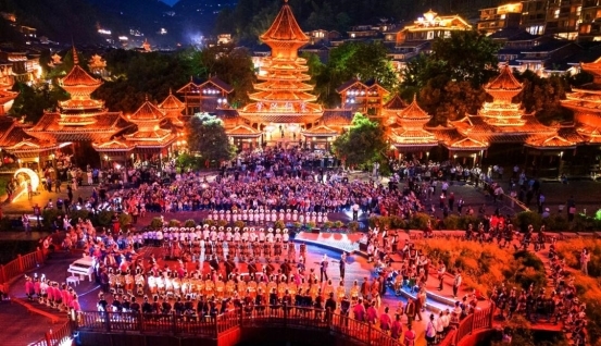 每日10时,迎宾寨门前芦笙悠扬,身着银饰盛装的侗族同胞以最隆重的礼仪迎接八方来客——拦门敬酒、唱拦门歌,醇香的米酒伴着热情的歌声,让每一位远道而来的客人瞬间融入侗乡的热情之中。信团鼓楼内,歌师与歌手轮番对唱,无伴奏的侗族大歌如天籁般绕梁不绝,世界非物质文化遗产的魅力在古老的歌谣中静静流淌。