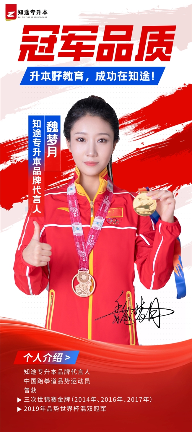 此次与魏梦月、张婧彧两位冠军的签约合作,是知途专升本发展历程中的重要跨越。冠军形象中蕴含的 “专业专注、追求极致、永不言弃” 精神,与知途专升本 “深耕升本教育、打磨教学品质、助力学子成功” 的企业文化高度契合;两位冠军对卓越的执着追求,更是与知途专升本 “以高品质教育成就学子未来” 的品牌价值追求同频共振。这场体育精神与教育力量的完美融合,不仅将进一步提升知途专升本的品牌影响力与美誉度,更将让 “冠军标准” 成为品牌发展的新标尺 —— 以冠军的专业度打磨教学产品,以冠军的坚韧度陪伴学子备考,以冠军的卓越度守护学子升本梦想。